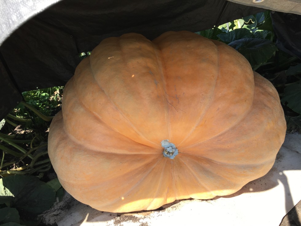 This is the one that got away! 1554 Mathison. Blossom split. This was by far the biggest pumpkin we saw on our tour today. We had a nice visit with Tim and his grandson. Tim sent us home with some lemon cucumbers, cherry tomatoes and a couple of unique zucchinis. That is the end of the tour for today. John Hawkley and Jose Ceja were busy with work and family so we will have to hit their patches another day.
