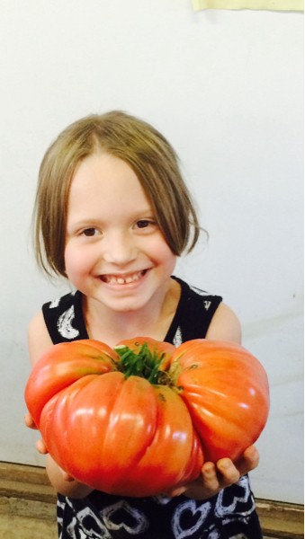 Picked some more maters today... Here's my niece Lila ...these domingos grow huge tomatoes...this one also off the 5.58