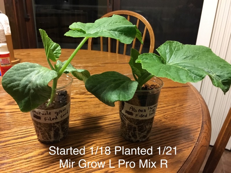 All of my test germinations show that my plants in miracle gro potting mix are taller with bigger leaves but the plants in Pro Mix starter soil look stockier and healthier but the leaves aren't quite as big.
