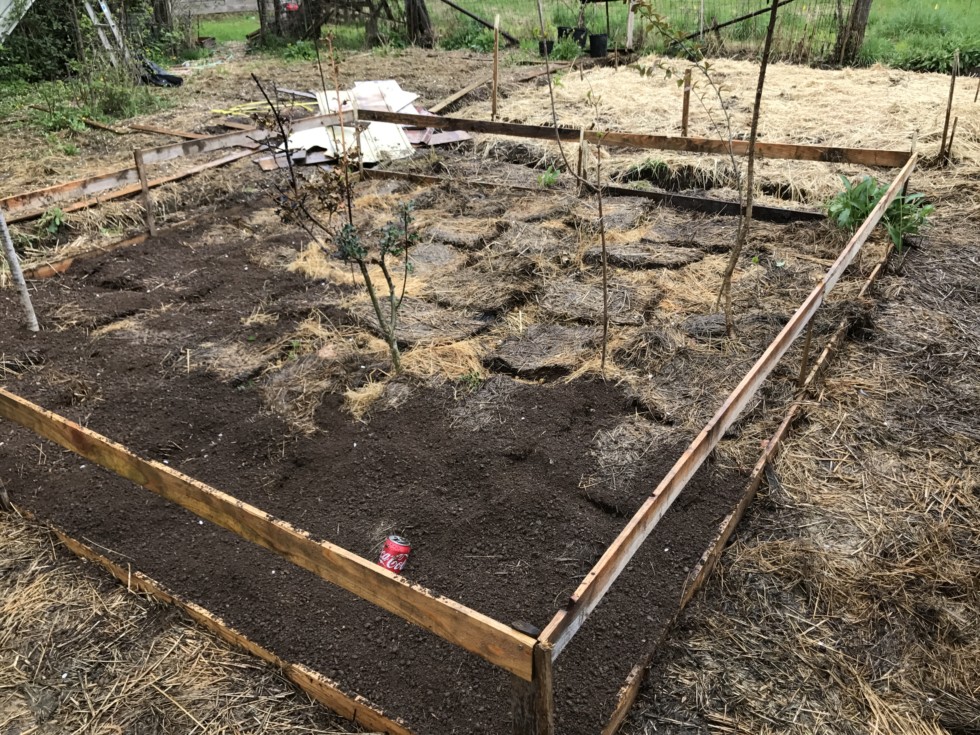 150 sq ft patch. My strategy may be more oddball than winning--but we'll see--the plan is that the hay will be the perfect food for enriching the soil. I already put four or five bales in this spot last fall, and now I've added more. Other than attracting voles, I think potatoes are a good crop to mix with the pumpkins. The potatoes will enjoy the shade later in the summer... and the pumpkin will not mind growing over onto (and grabbing) the potato vines. And I will enjoy having an understory of food rather than pernicious weeds... unless the voles eat all of them. Please--email me if you know how to get rid of voles. Thanks!