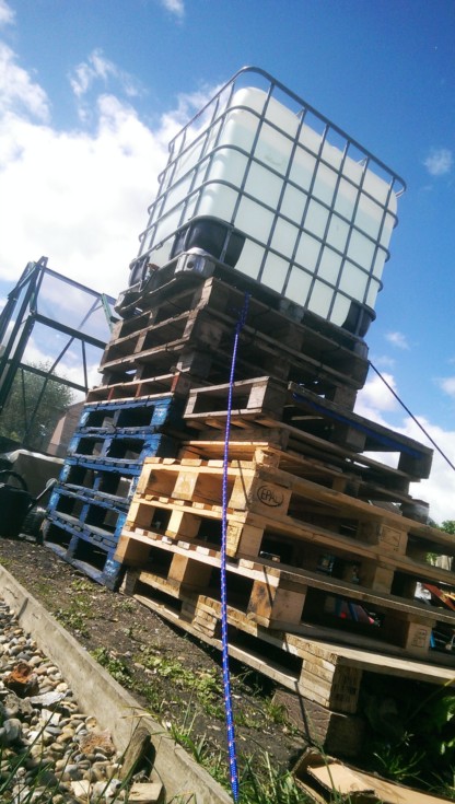 This is the water butt which holds 1000l with a head of 6 ft. It took well over an hour to fill from the hosepipe. I don't really want to use tapwater because it's chlorinated but I don't have much choice. A water filter will be considered next year.