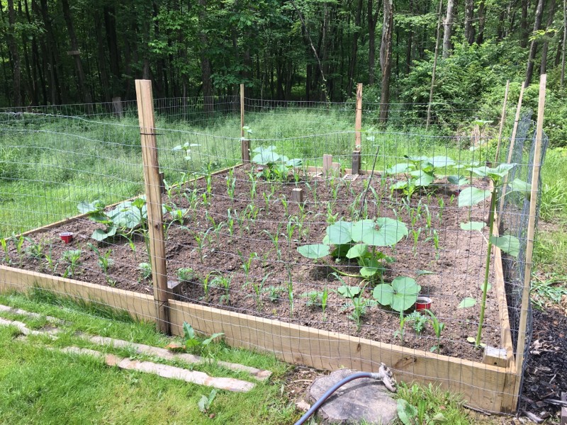 Decoration garden. Cinderella, Nightfire, Blue Moon, long gourd and Indian corn. Sunflowers too, almost forgot them.
