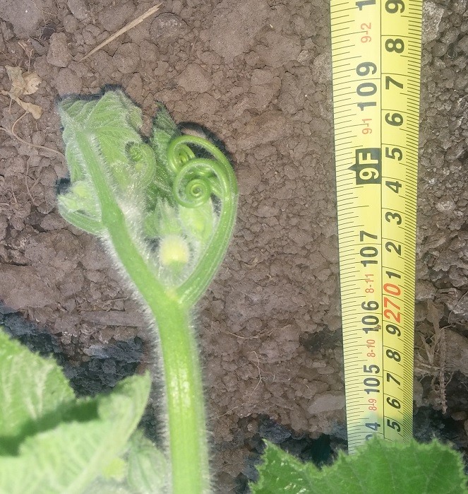 1140 Finders has one in the tip at 9 ft out. It should land between 10 and 11 ft and be pollinated around the 17th...at the current rate of growth, I believe the plant will be big enough to keep this one....