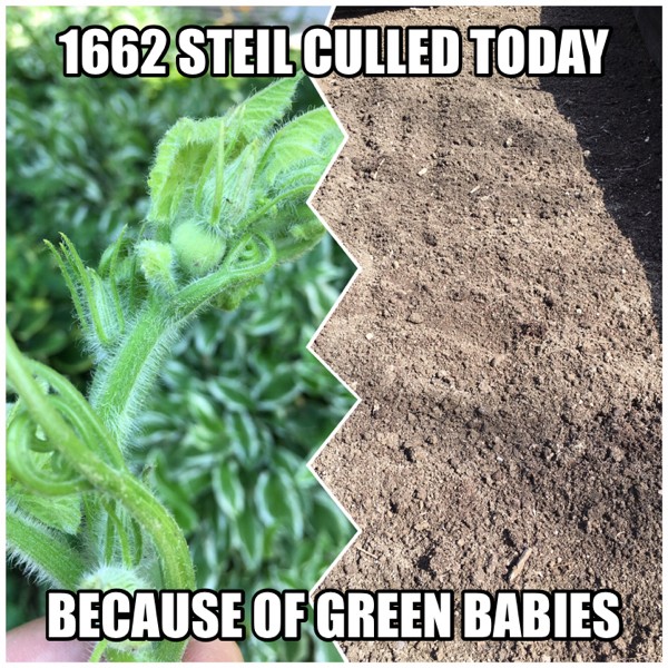 We pulled my daughters 1662 Steil today. Baby kins were green. She will now focus on our remaining 1662 Steil that we kept going as a backup. See following pics.