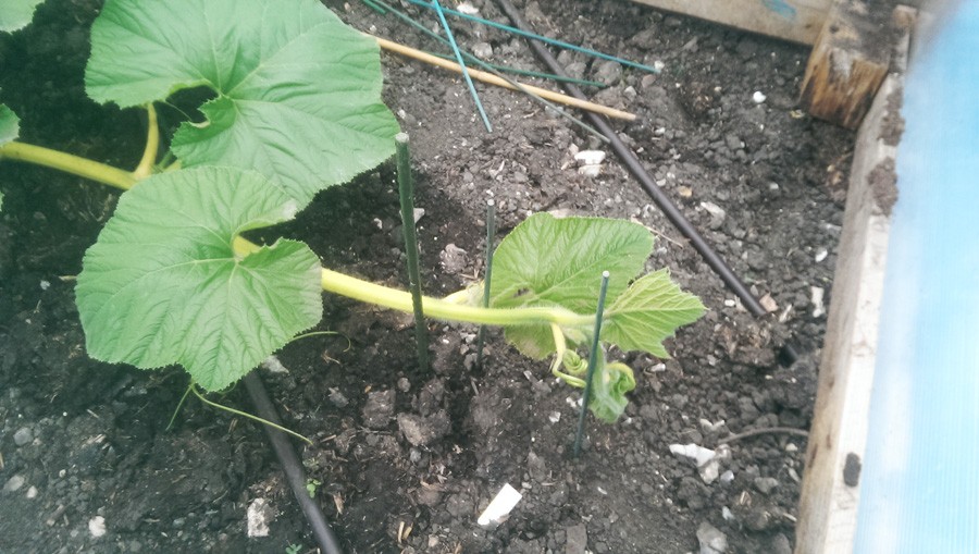 Yes there is a female bud at the end of the main vine if you look closely, and it's probably the first flower upon which we will attempt pollination which will hopefully be in 1-2 weeks from now. It's on the 333 and about 12ft from the stump. The plant looks healthy, growing well with well-behaved secondaries. Feeding has been varied this past couple of weeks; among other things we use Azos, NPK RAW Grow, NPK RAW Phosphorus, Canna Terra Vega, Canna Rhizotonic, Calcium nitrate, Mg SO4 etc with a pH varying from 6.0 to 7.0 and an EC from 1.4 to 2.0. Next week will probably be the last of the main growing phase and we will direct nutrition more towards a bloom phase.