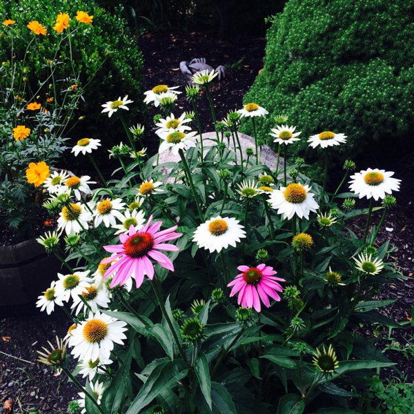 Suck suck suck suck suck...so I'm checking out this coneflower while the missus was firing up the burn barrel...i thought it would be a good idea to try and split off the part that had the purple color in it... I called lambchop over to take a look...(she loves when I call her lambchop )...I took a few minutes to convince her it was a good idea but we both agreed it was best...uhhh..."where's the shovel honey?..."
