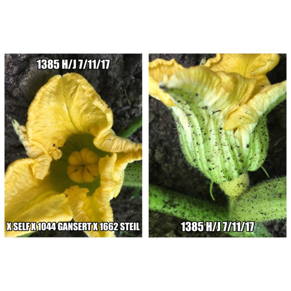 Pollinated a 1385 H/J x self x 1044 Gansert x 1662 Steil this morning. Used what male flowers were available. Not being picky. Covered with red solo cup because of rain in forecast.