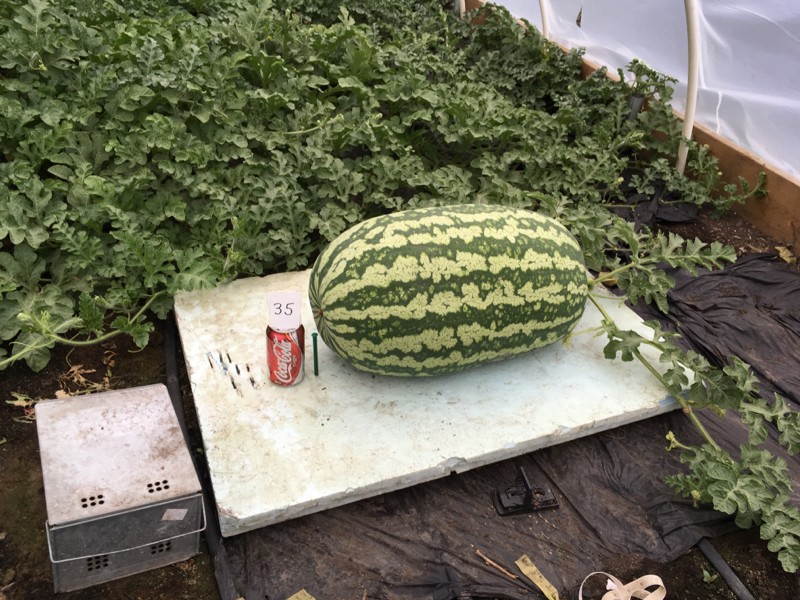100 Crews melon. 34 DAP. Plant looks better but fruit isn't very fast.