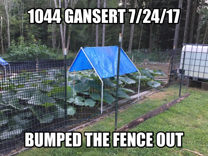 Moved fence to make more room. Slowly moving pumpkin into a better position. If it takes, I will need to do a lot of trimming and maneuvering to get it leveled out and mill Fabric in place.