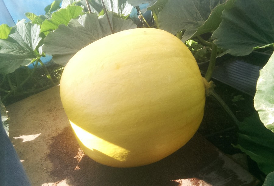 The transplant DAP 32 at 43kg(95lb). Finally a day of sun today. We've had 40l rain per sq m in the past 3 days and temps as low as 10C (50F). However this and the 333 are growing steadily, though not spectacularly. Just this one and the 'sink' at the end of the main vine are left on this plant now. It's leaves are looking in better health than the 333. Perhaps it's the one to watch?