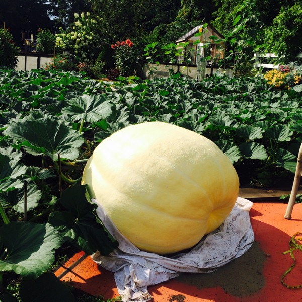 She is a block of a pumpkin...no plant issues yet...vines all intact...fully terminated except for the main and a secondary or two ...lets move it MYRTLE!!!