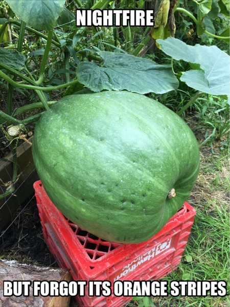 This nightfire pumpkin forgot it's orange stripes. Not sure what all the little indents are about.