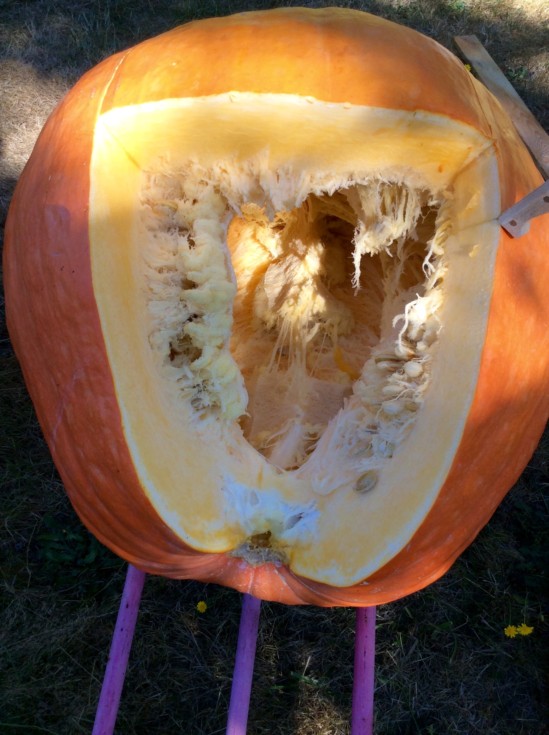 Happy with the walls of 1462 Gibson. Was thinking it would be very thin... but it's got a lot of meat for a 32 DAP pumpkin.