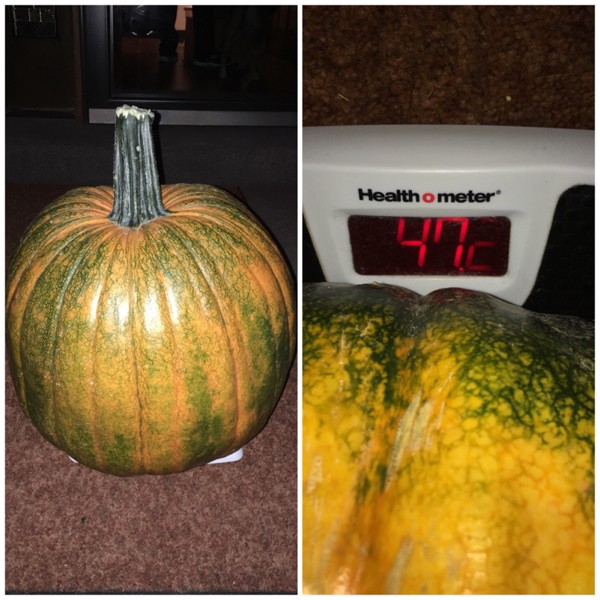 Killing frost coming tonight so I picked the remaining 91.5 Zappa B field pumpkin. It is now the 47.2 Yohe uow.
