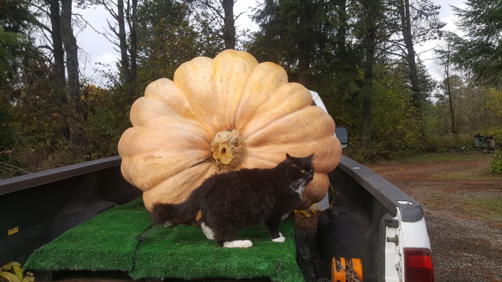 The very last pumpkin, the 2624 was loaded up and I'll take it to the Seattle Aquarium for display and carving. It got a small but fatal stem split early on so I caulked it hoping it would continue to grow and be a good carving pumpkin.I quit measuring it Sept. 13, and it was 386", or 1284 pounds.