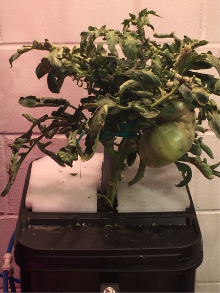 My second best of tomatoes still on the vine. The aeroponic tomato just hit 17 inches at 25 dap. The 5 fused blossom didnt fully set so I am sticking with this one. It is still growing. Hoping it might reach 2 pounds.