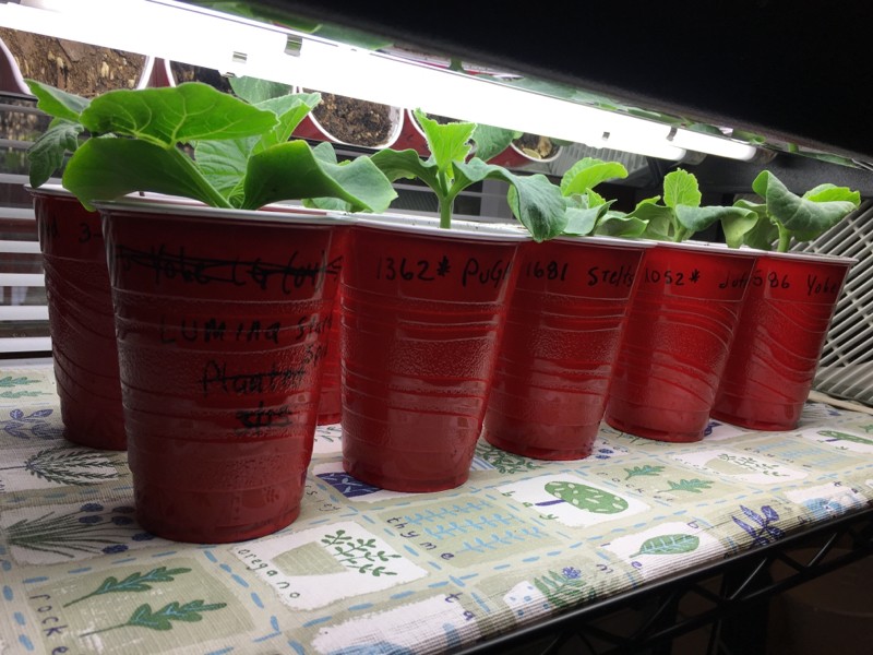 Experimenting with keeping the test plants really close to the T5�s along with a fan to keep the young leaves from getting damaged. So far so good.