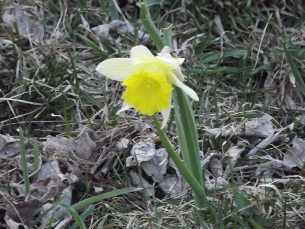 First flower of spring, a miniature daffodil. Only 3 weeks later than normal. I still have some rebar supports for tomato plants frozen in. I was able to shove them in by hand about 3' deep last year. They were on the long gourd raised bed. I rotate gourds and tomatoes on opposite sides of the trellis each year. At least it shows I have nice, deep loose soil there. Other posts that weren't as deep are pulling out easily.