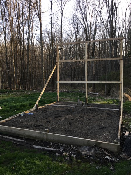 I built this 12� trellis for long gourds. Field pumpkin(s) will also go here.