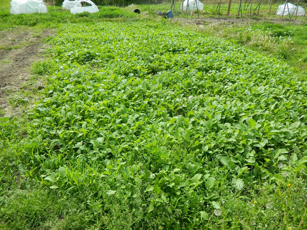 The mustard is coming on strong and choking out the weeds. It was just broadcast with no tillage, just lightly raked in. Got the last of the plants in the ground today. 129 McWilliams and 127.5 Young long gourds to go along with the 141 Vunak. 257.5 Barlow and 115 McWilliams watermelons. One of each of the watermelons started to split the main stem already and were just put in odd areas to see if they do anything. 279.5 English and 265.5 Engel bushel gourds. 132.5 Crews and 118 Witter field pumpkins.