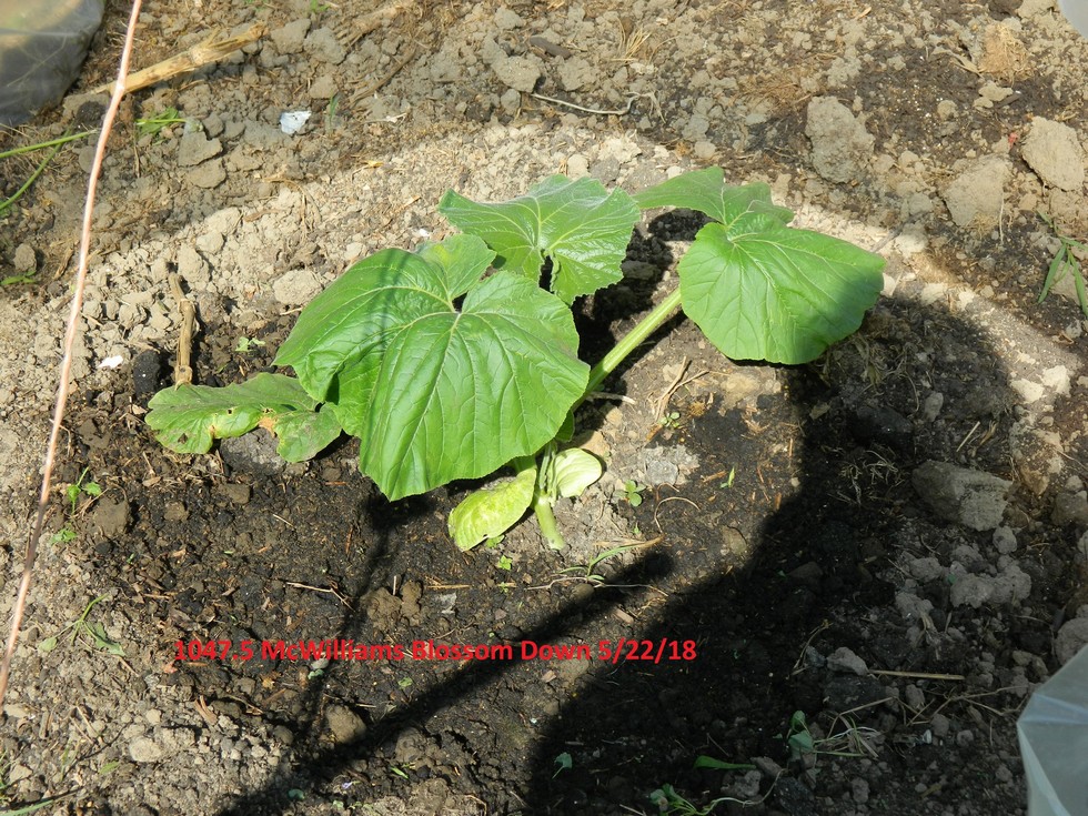1047.5 McWilliams in the low spot. It will be our attempt for a blossom down pumpkin on a secondary, and a conventional one on the main. I robbed a lot of soil off this spot after the 2015 growing season, so it will get more feedings than the rest of the patch.