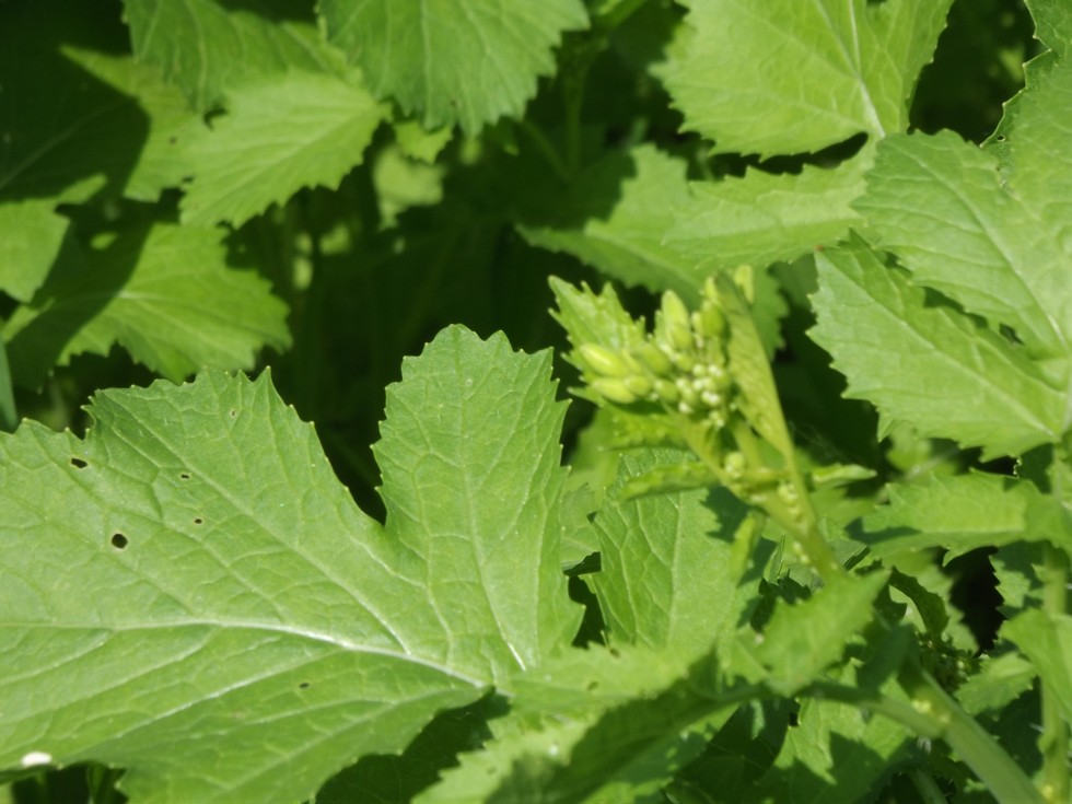 Flower buds are showing up on the mustard. Hopefully the blooming will coincide with the predicted cool down, if you consider low 80's cool, so we can mow and till it in.