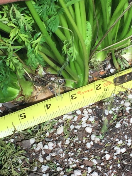 The crown of the indoor carrot. I can see orange in a five inch diameter. I don't know how deep this goes but i am hopeful. This plant has not been given top level care. I have been drenching it with liquid organics at a ratio of 6-9-15 every three days with the addition of micros and molasses. I backed the light off from 900 watts led blue back to 600 watts blue led. 900 was causing light toxicity. I should really pay more attention to this plant..it should be my personal best.