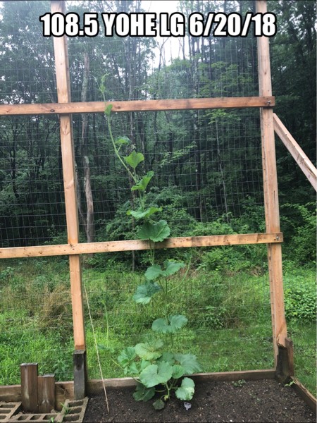 My dad grew his 108.5� long gourd in a dead crabapple tree that he made a ring wall around the trunk and filled with dirt. Hoping pops sends me some good fortune this season. Plant had a couple more feet to go to reach the top of the 12� trellis. Then I don�t know where it�s going from there. Gonna be interesting.