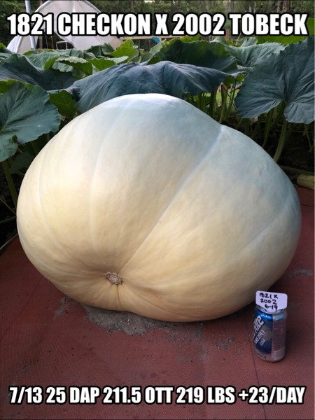 Named this gal �Checkers�. She is my best grower. Should crack 300 lbs by day 30. My best growing pumpkin ever.