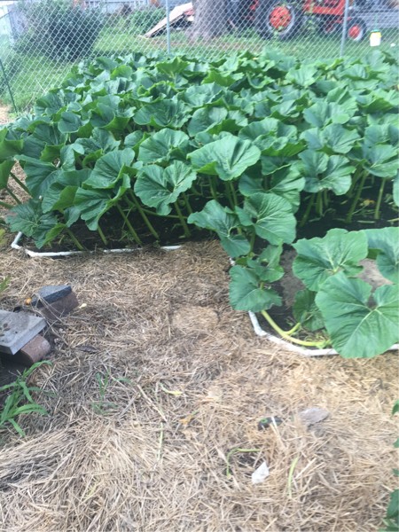 It looks like the chosen blossom on both plants have taken. Good thing..I am out of room on the 150 sq foot plant. Two more vines left to terminate then I will just watch the pumpkin grow.