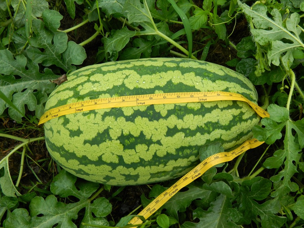 Watermelon on 115 McWilliams. I let bees pollinate them so I have no idea of the age. This one set on the edge of a drainage ditch, so I can't put any plywood, grate or other hard surface under it. It would roll right off. Jacob and I will pack sand under it and on the downhill side.