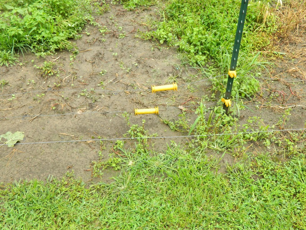 I added another hot wire to try to stop rabbits. In places it is just outside the lower 2 wires. In other places its between the lower 2 wires. Next year there will be 4 or 5 low wires to stop the critters.