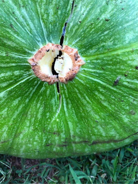 And #4 bites it today. Two in the past two days. Three babies left on this plant. One is more oblong than the others. Who knows.