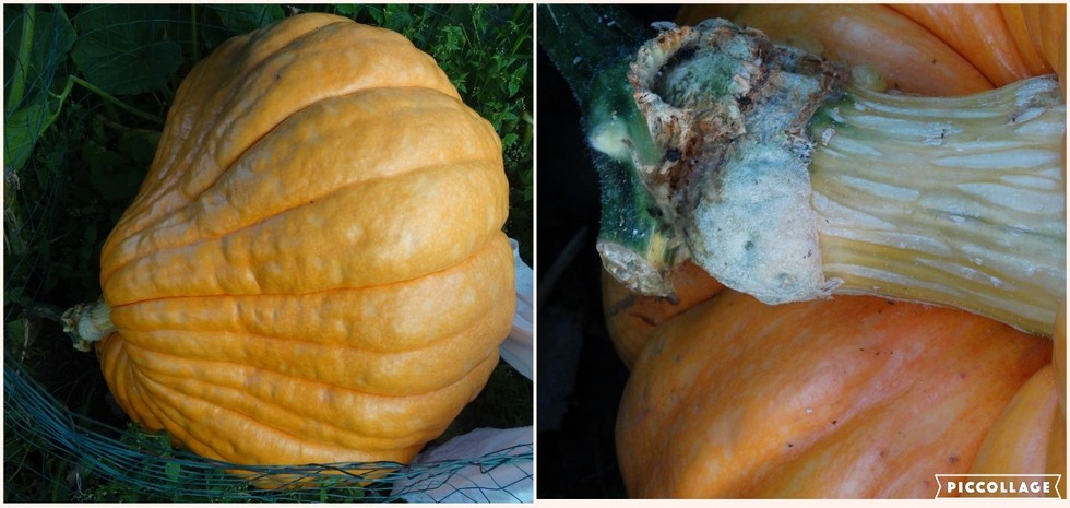 The other pumpkin on the BES plant is growing faster now. Problem is the short stem. The end of the pumpkin is pushing on the stem. I removed the stubs of the vines and leaf. If stress gets worse I may have to do some surgery and hope it heals up. Shouldn't be any worse than a rabbit bite.