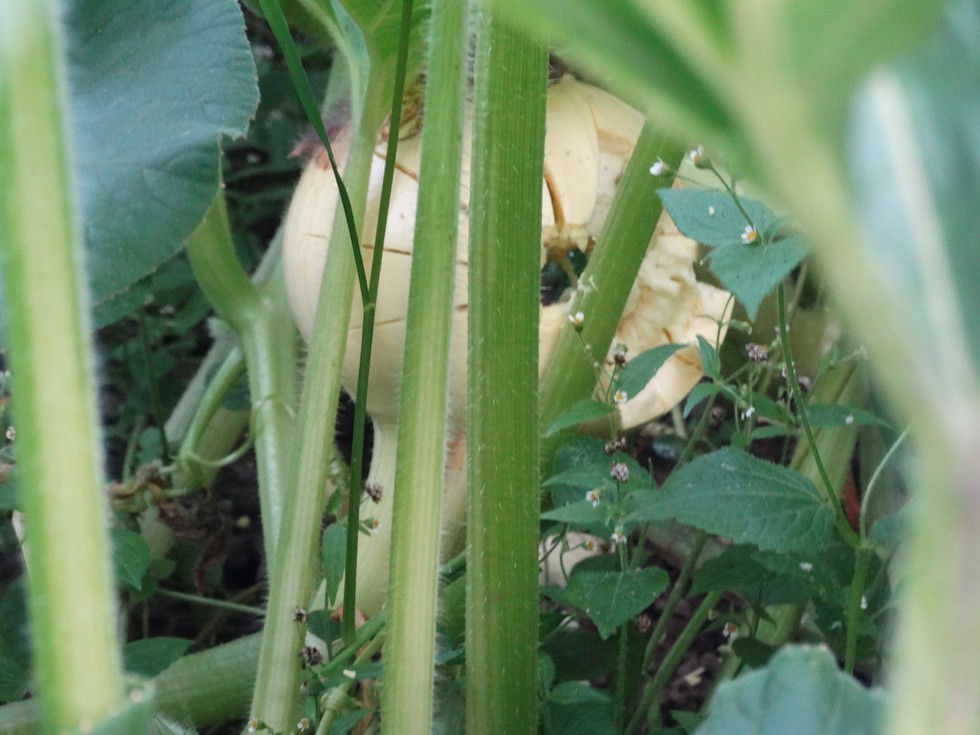 Did you ever miss a couple tertiaries, have some vines cross each other and have a pumpkin set where you can't get to it without stepping on vines? This won't work for city growers, but out in the country a .22 hollowpoint will cull a softball sized pumpkin