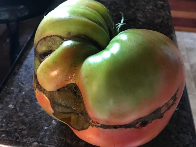 Picked a couple maters. One was starting to turn red on a Big Zac. Getting better at getting them to look ugly.