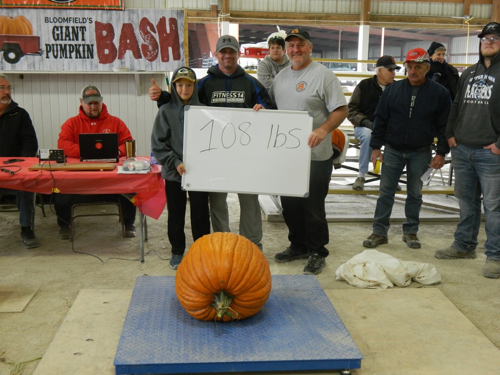 Last year Caleb Jacobus beat my field pumpkin by 2.5#. This year mine was 10# heavier and I thought I had a chance to win. But teaming up with John Barlow, he beat me by 11# this year. Oh, well, wait until next year.