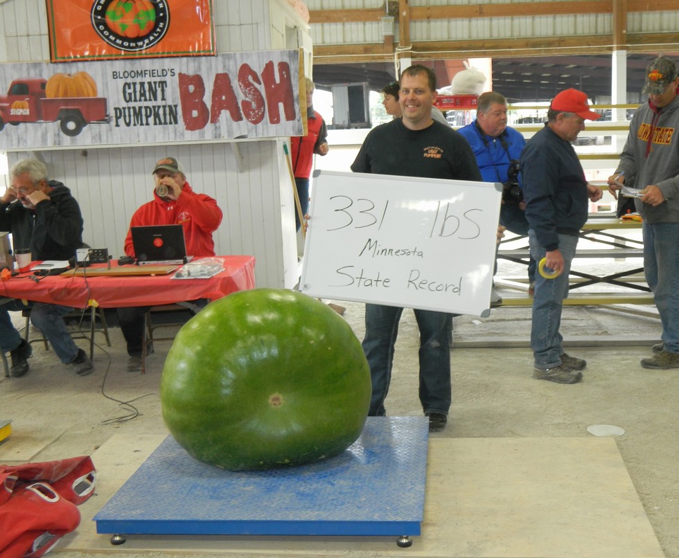 Chris Brown brought the winning bushel gourd down from Nowthen, MN. State record 331#. 2 weeks ago it would have been a world record.