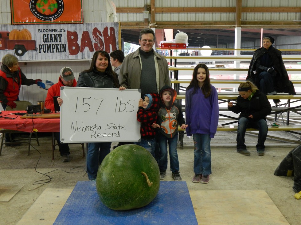 The Wolfe family from Omaha brought the 3rd place, Nebraska State record bushel gourd. Their first time growing bushel gourds. Barlow and Jacobus took 2nd place.
