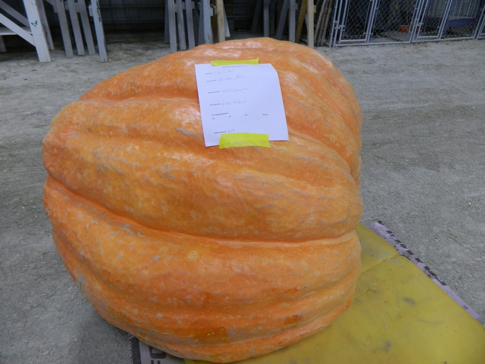 Chris Brown took 4th place and The Howard Dill Award with this orange beauty. He also had the winning long gourd, tomato and squash. Lots of ribbons, plaques and money going to Minnesota. There were growers from 7 states: Iowa, Wisconsin, Minnesota, Nebraska, Missouri, Kansas and Texas.