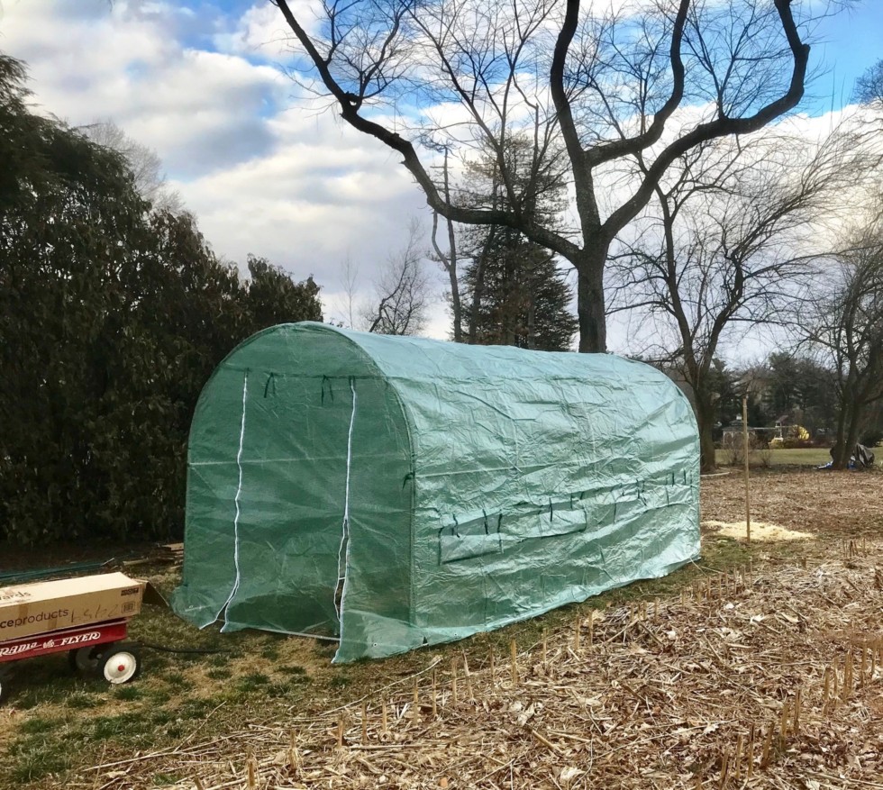 Got myself El-Cheapo 7x7x15� Greenhouse (Best Choice Products $114) � and set it up as a test site next to my patch. Plan to move it there after rototilling. It was an excruciating experience to erect � total 4-5 hours over a few days to get it right. My wife and I have decades of putting together toys and IKEA stuff � but never like this. The envelope doesn�t fit. Designers probably had the cover cut spects right, but the sewers defeated all their good effort. No instructions, just a stick sketch with numbered pipes. If anybody tries this, it is imperative to position the verticals INSIDE the base layout, or there is no hope of getting the envelope to fit. If do it otherwise, takes forever to take it apart and redo it. Also the corners from outside in are: base pipe, flat end of angle piece, inside pipe. Even with this, had to disconnect the front base pipes and lash into an overlap position to get the zippers all the way down (was 4� spread). Throw away the stakes they gave you and buy 2� stakes and hammer in securely, zip tied to base pipes and corner extensions, otherwise bye-bye greenhouse with the first wind. However, it IS breeze proof. Zip tie entire cover all the way around the base. The product review that says some guy put it up by himself in an hour must�ve been a company plant. After all that � it�s wonderful.