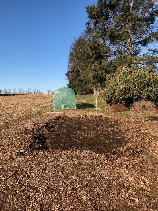 Raked off some the winter leaf mulch to let soil dry in prep for early rototilling and translocation of EL Cheapo greenhouse (still standing, despite all prediction)� hopefully as soon as I get back my soil sample reports from Western Labs and Penn State (sent last week).