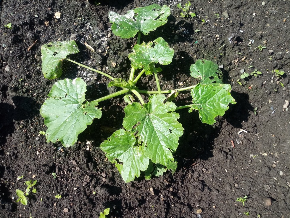 Between cucumber beatles and hail dammage my zucchini plants look a little beat up !