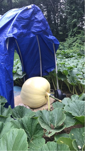 Woody came over and helped move the pumpkin. We cleared out some leaves. Much more slack now and more room for the pumpkin to grow. Did the same on 1911