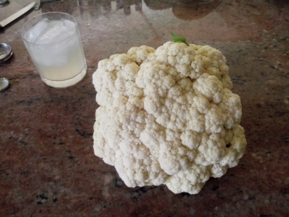 My first ever cauliflower 30" circumference that would be abojut 10 pounds on the tomato scale !!!