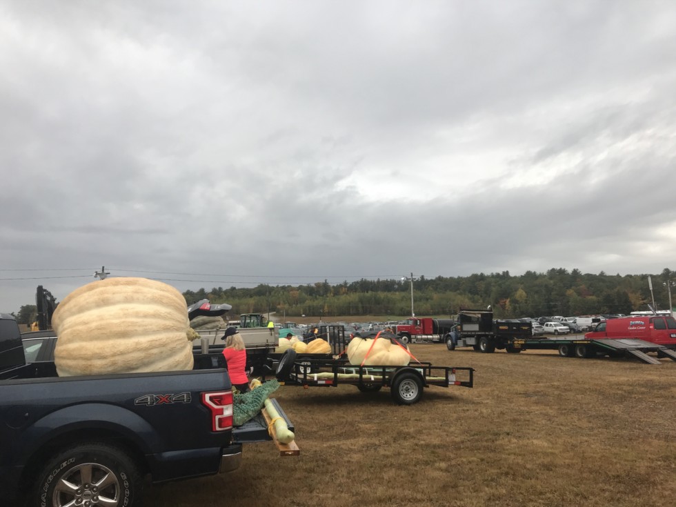 I�m here at the Deerfield fair. There are some huge pumpkins. Raining pretty hard