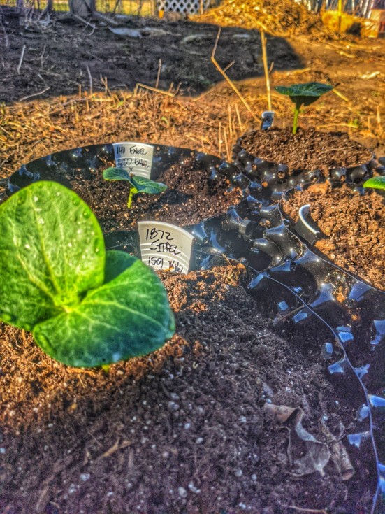 Well these two are taking their sweet times germinating. I spread 520 lbs of gypsum, 100 lbs of lime, 80 lbs of Potash of Sulfate, 20 lbs of 0-45-0 Triple Phosphate, 50 lbs each of Humic Acid, Feather Meal, Blood Meal, Kelp Meal, Alfalfa Pellets, and Beet Pulp. 3 lbs of Borax, 2 lbs of Manganese Sulfate, 2 lbs of Zinc Sulfate, 1.5 lbs of Copper Sulfate. My 100 lbs of K mag was delayed and on the door step when I got home. I am going for a 4,000 lb Jacket this year. In order to achieve this I need to weigh 3 pumpkins that 4,000 lbs.