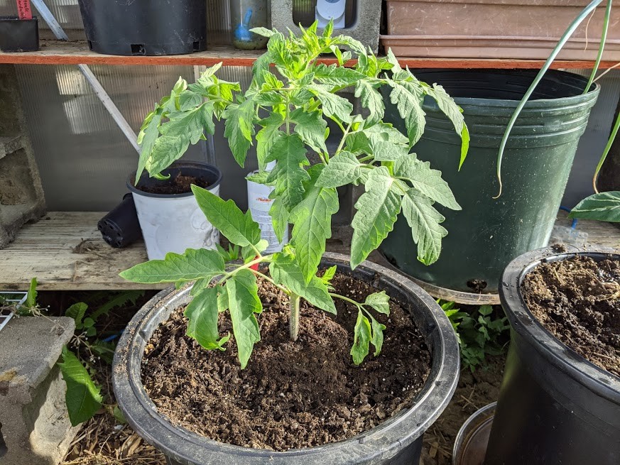 Challenge plant starting to take off. Seems to like the empty mini greenhouse for it's living quarters.