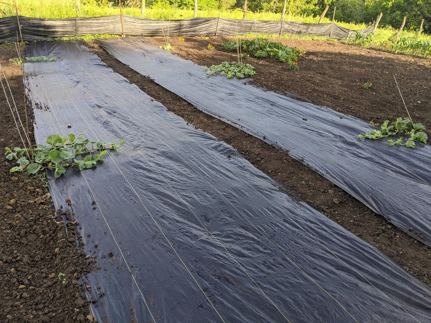 Cantaloupes. Usually get behind on weeding so trying to utilize ground cover this year to cut down on the exposed areas. We'll see how it works.