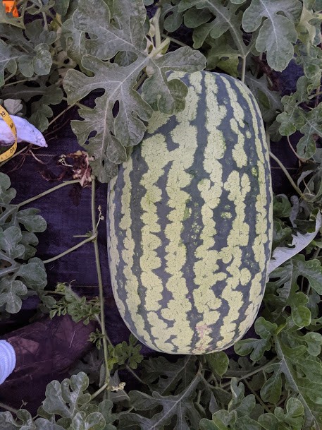 2nd melon on the 172 has a better shape with the ends filled in. 25 DAP 122.5 OTT est. weight 56 lbs doing a little over 3 lbs a day.